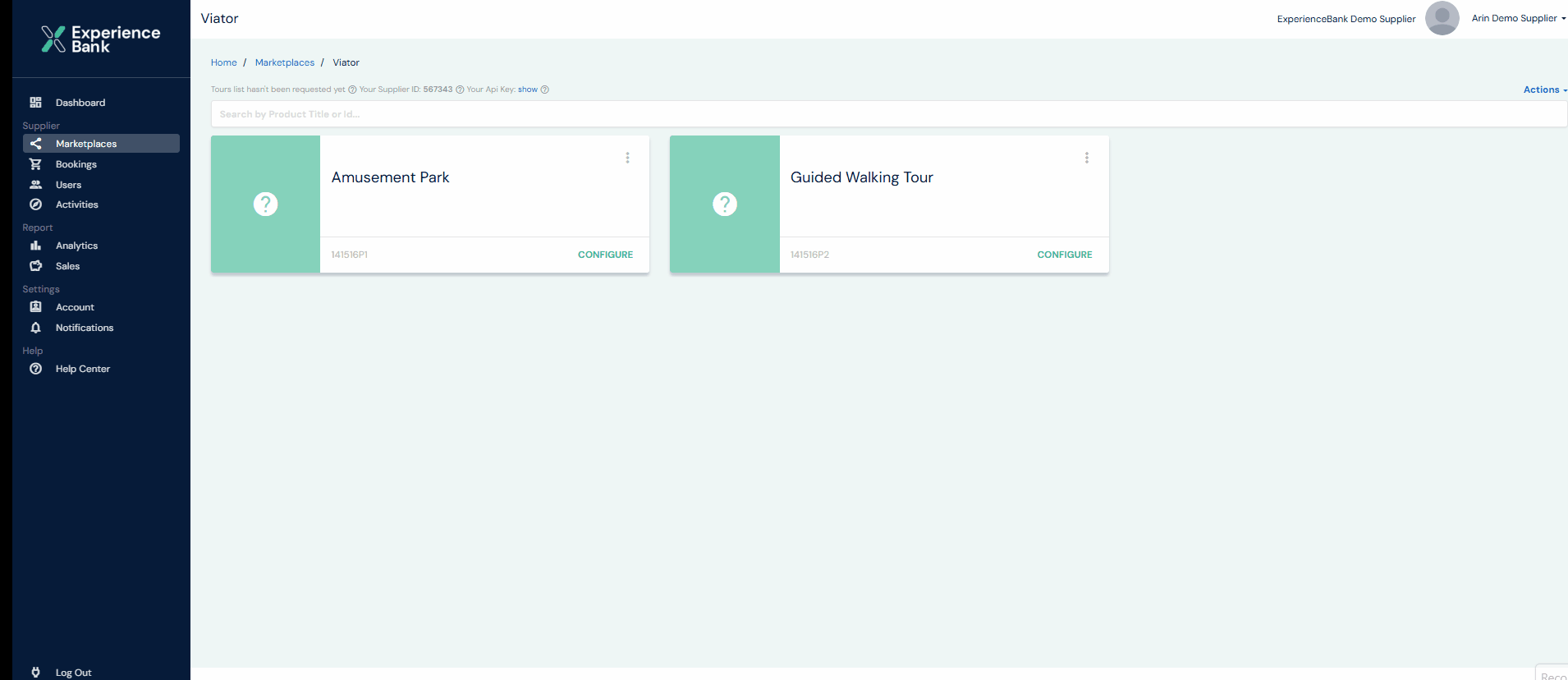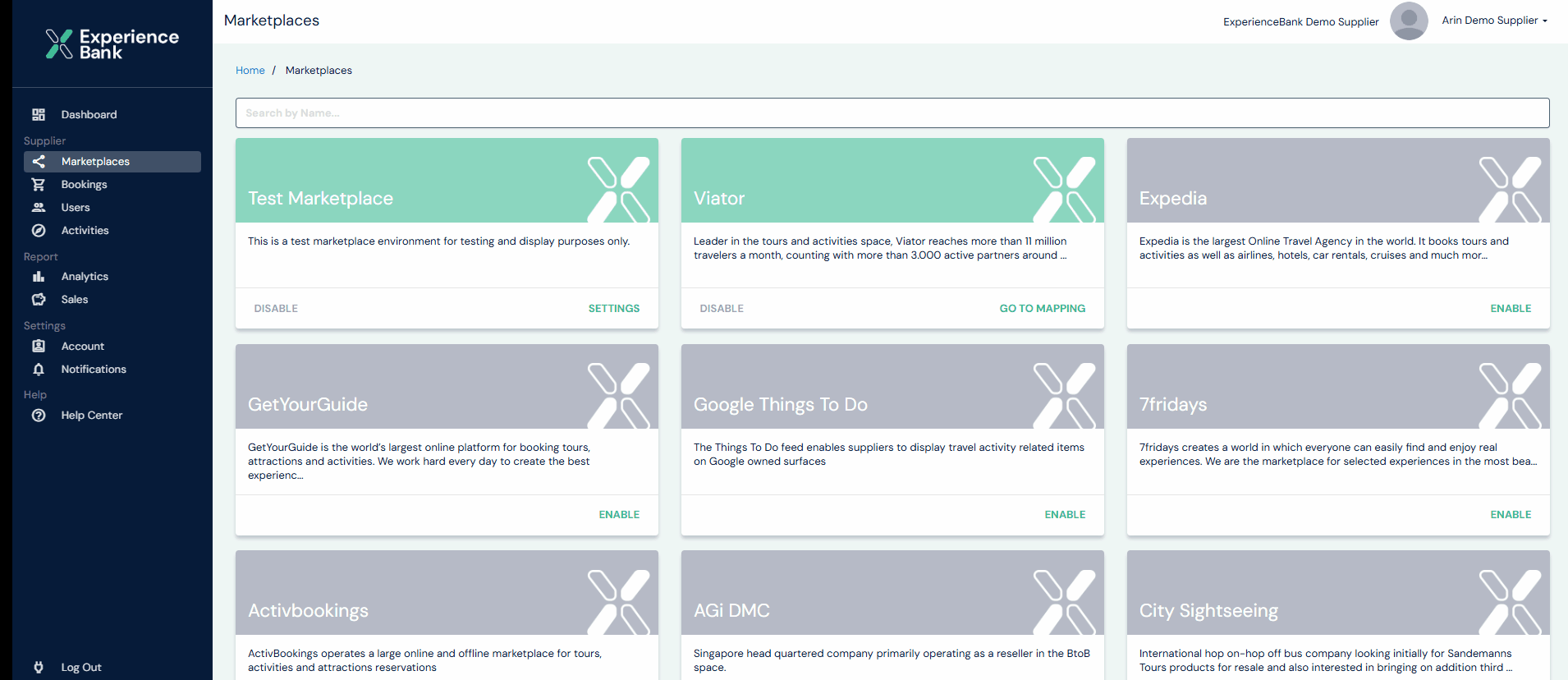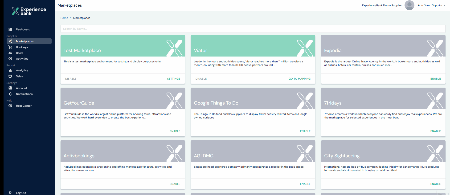 This page shows all marketplaces available in ExperienceBank.